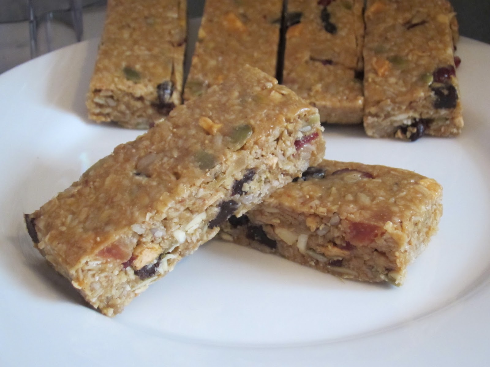 Recently I was lamenting the fact that we ever introduced our toddler son to granola bars. Whenever he sees a long, rectangle, shiny package he exclaims “Bar! Bar!”. I hate that the ingredient list, while mostly benign, is quite long with words I cannot pronounce and higher in sugar than I would prefer. Even the “organic” ones I found were chocked with sugar. To my great delight, I can across this fantastic muesli/granola bar recipe in the latest publication of our local organic grocer, PCC. This recipe is by Leika Suzumura, their nutrition educator (and once a dietetic intern of mine at WIC, I might add). I love that this recipe uses no granulated sugar, a very modest amount of honey, and heaps of nut butter. Just be sure to pick a trail mix that does not have chocolate bits or other items you don’t want in your bars. All of these ingredients, of course, can be found at PCC. If you have questions about where to find anything in your area, please ask. Oh, and I should add, these are not just for kids. I can hardly keep my hands off them and have been eating them about as much as my son. Great for on the go meals or snacks, and full of vitamins, minerals, and healthy fats. I might be making these every week.